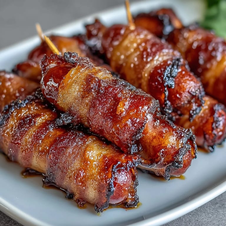 Save These bacon-wrapped smokies are the ultimate party appetizer, offering a irresistible combination of smoky, salty, and sweet flavors. The mini cocktail sausages are wrapped in crispy bacon and finished with a rich, caramelized brown sugar glaze that makes them absolutely addictive.