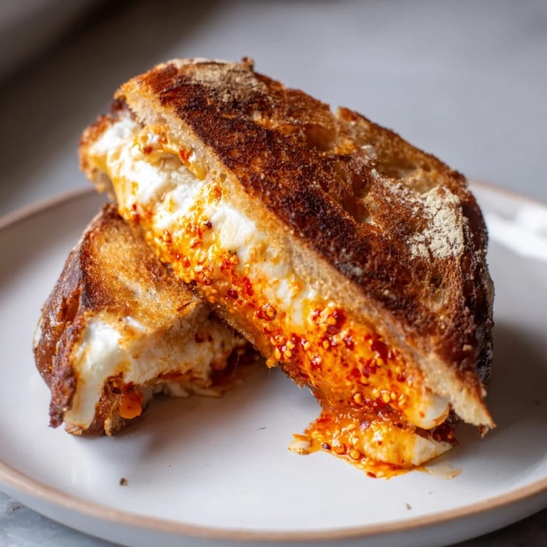 Save There's something about the moment when chili crisp hits warm brie that makes everything else fade away. I discovered this sandwich purely by accident on a Tuesday afternoon when I had beautiful brie and a jar of chili crisp sitting on my counter, and suddenly lunch became the best part of my day. The way the cheese gets creamy and almost luxurious between buttery bread, with that spicy crunch cutting through it all, felt like I'd stumbled onto something I'd been missing. It's the kind of grilled cheese that makes you pause between bites and think, 'How have I been living without this?'