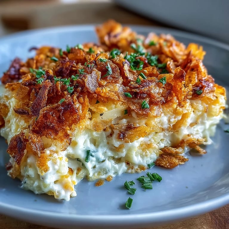 Save There's something undeniably comforting about a casserole that brings people together, and Lightened-Up Funeral Potatoes with Greek Yogurt Sauce does exactly that. This beloved American side dish combines tender shredded hash browns with melted cheddar cheese and a creamy Greek yogurt-based sauce, all crowned with a golden, buttery cornflake topping. Traditional funeral potatoes get a healthier makeover here, swapping heavy cream for protein-rich Greek yogurt without sacrificing any of the rich, indulgent flavor. Whether you're serving it at a potluck, family gathering, or alongside your weeknight roast chicken, this vegetarian casserole delivers all the nostalgic comfort you crave in just over an hour.