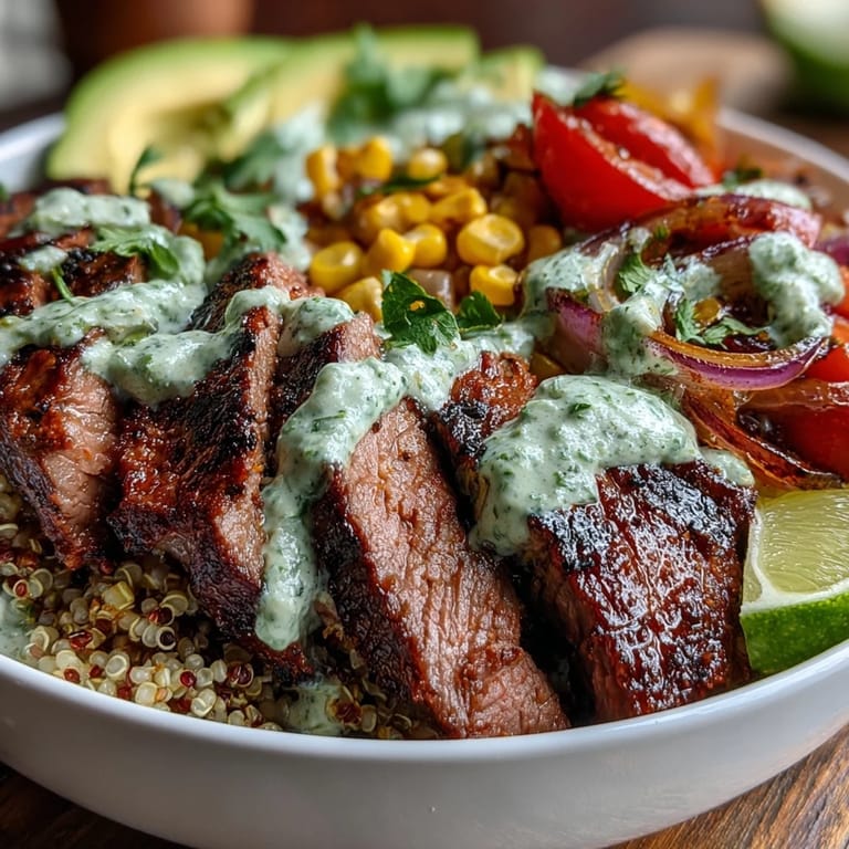 Save The first time I made this steak bowl recipe was during a Tuesday evening when I desperately wanted something that felt like restaurant takeout but used ingredients I already had in my kitchen. The corn had been sitting on my counter for days, and that flank steak in the freezer was calling my name. I threw everything on the grill while the rice cooked, and honestly, the combination of charred corn, seared meat, and that tangy cilantro cream sauce turned an ordinary weeknight into something special. Now it is in our regular dinner rotation.
