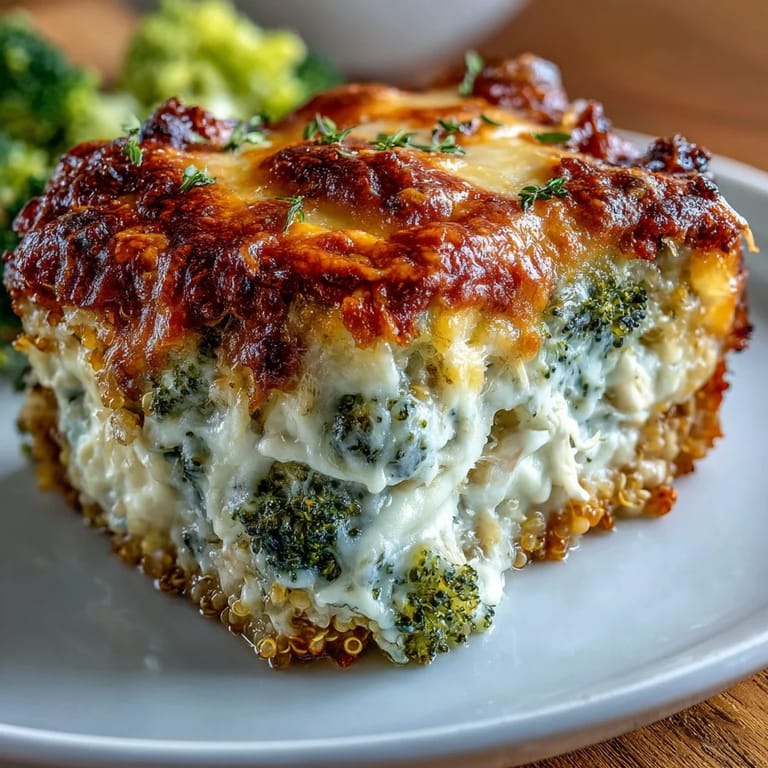 Save Experience the ultimate comfort meal with this wholesome Broccoli Quinoa Casserole. This hearty dish brings together tender shredded chicken, protein-rich quinoa, and vibrant broccoli florets, all enveloped in a creamy, melted cheese sauce. Naturally gluten-free and incredibly satisfying, it is the perfect solution for a nutritious family dinner or a reliable meal prep option for the week ahead.