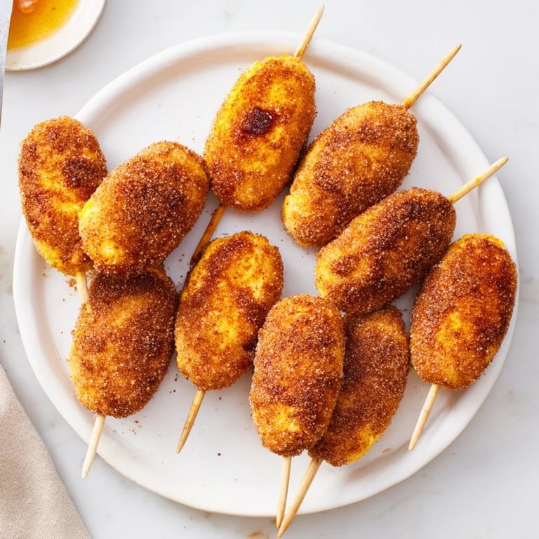 Enjoy warm, fluffy biscuits skewered and coated in spicy cinnamon sugar. The combination of cayenne, chili powder, and cinnamon delivers a playful, sweet-hot kick baked to golden perfection. Each skewer is brushed with rich melted butter, rolled in a fragrant spice mixture, and then roasted until puffed and irresistibly aromatic. Adjust the heat with cayenne or add smoky paprika for a custom flavor boost. Serve warm and pair with cream cheese icing or vanilla glaze to balance the heat. These skewers are a fun, shareable treat ideal for dessert or a festive snack.