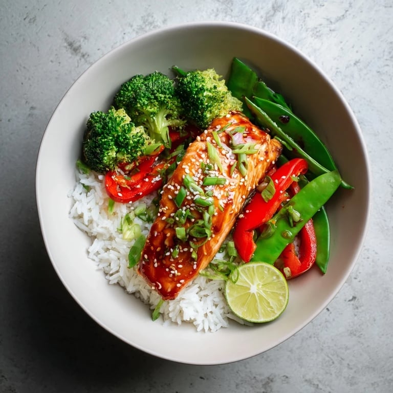 - Fluff your cooked rice with a fork and divide it among four bowls. Arrange those vibrant vegetables alongside the salmon, making sure to drizzle any remaining glaze from the pan over everything. The way it catches the light makes it look like something from a restaurant.