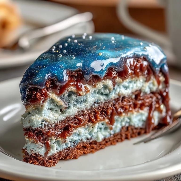This celestial layer cake showcases vibrant swirls of navy blue, purple, teal, and black buttercream, blended smoothly over moist vanilla sponge layers. The shimmering edible glitter adds a sparkling finish, enhanced by optional fondant decorations representing Pisces symbols or stars. The cake’s buttery crumb and rich vanilla notes create a delightful balance to the vibrant galaxy hues, perfect for starry celebrations. With simple baking steps, colorful frosting techniques, and creative decoration tips, this cake offers an impressive centerpiece for memorable occasions.