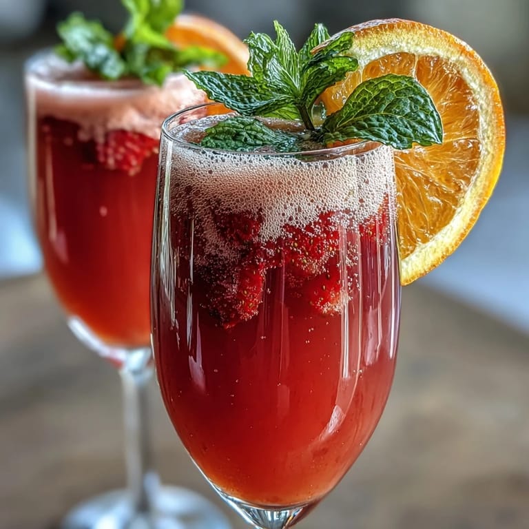 This bright and refreshing drink blends fresh strawberry purée with chilled orange juice and sparkling water for a festive, bubbly brunch addition. Sweetened lightly with honey or agave and garnished with slices of strawberry, orange, and mint, it's a delightful alcohol-free option perfect for spring gatherings. Quick to prepare, it offers a harmonious balance of fruity and citrus flavors with a fizzy finish that pairs well with light brunch fare.