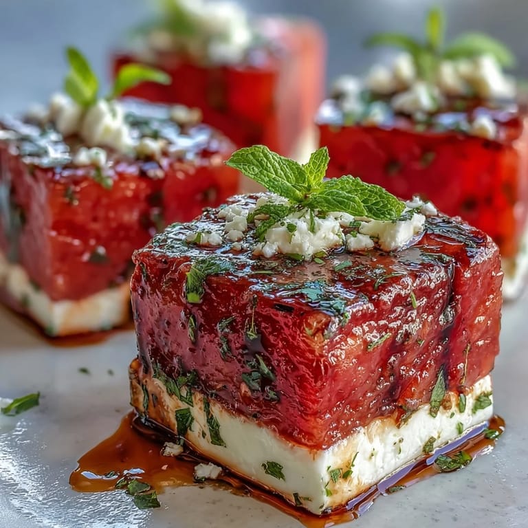 While this recipe is perfect as written, there are several delicious variations to explore. For added zest, sprinkle with a pinch of flaky sea salt or lemon zest just before serving. Substitute basil for mint for a different herbal note that pairs beautifully with the watermelon and feta combination. If you want to add a touch of heat, sprinkle with red pepper flakes or drizzle with chili-infused honey. For a more substantial appetizer, add a cube of cucumber between the watermelon and feta, or include a small piece of prosciutto for a non-vegetarian version. You can also experiment with different types of cheese—try halloumi or fresh mozzarella for a milder flavor profile.